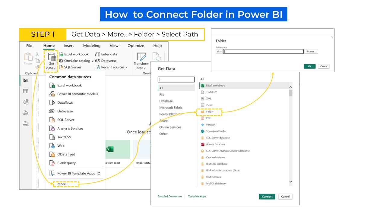 How can I connect the folder in Power BI? What if I add the Excel file every week? Does it update in Power BI?